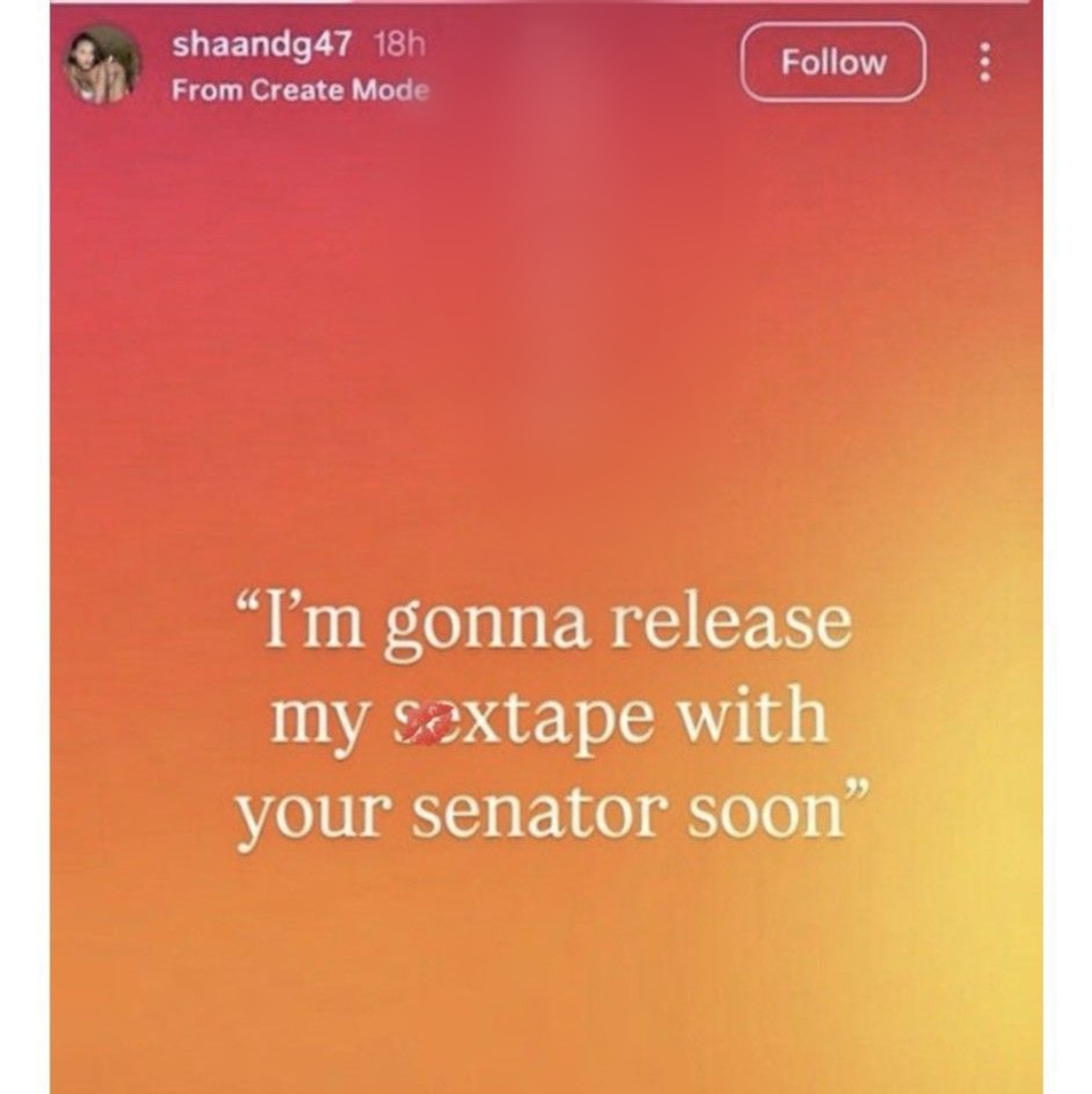 The threat comes amid ongoing disputes following a viral video that surfaced online, purportedly showing the senator massaging her feet aboard a luxury private jet.
