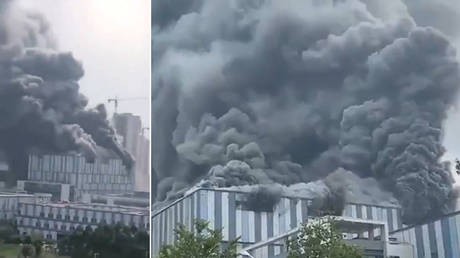 A research and development lab of the Chinese tech giant Huawei Technologies in the southern city of Dongguan caught fire, producing large clouds of thick grey smoke. Locals caught the incident on camera.