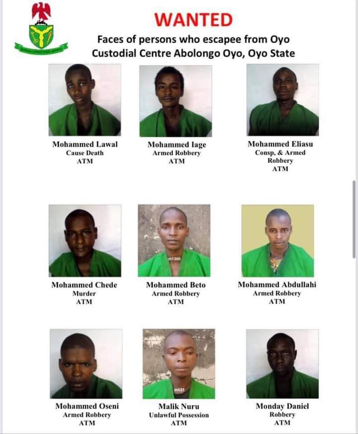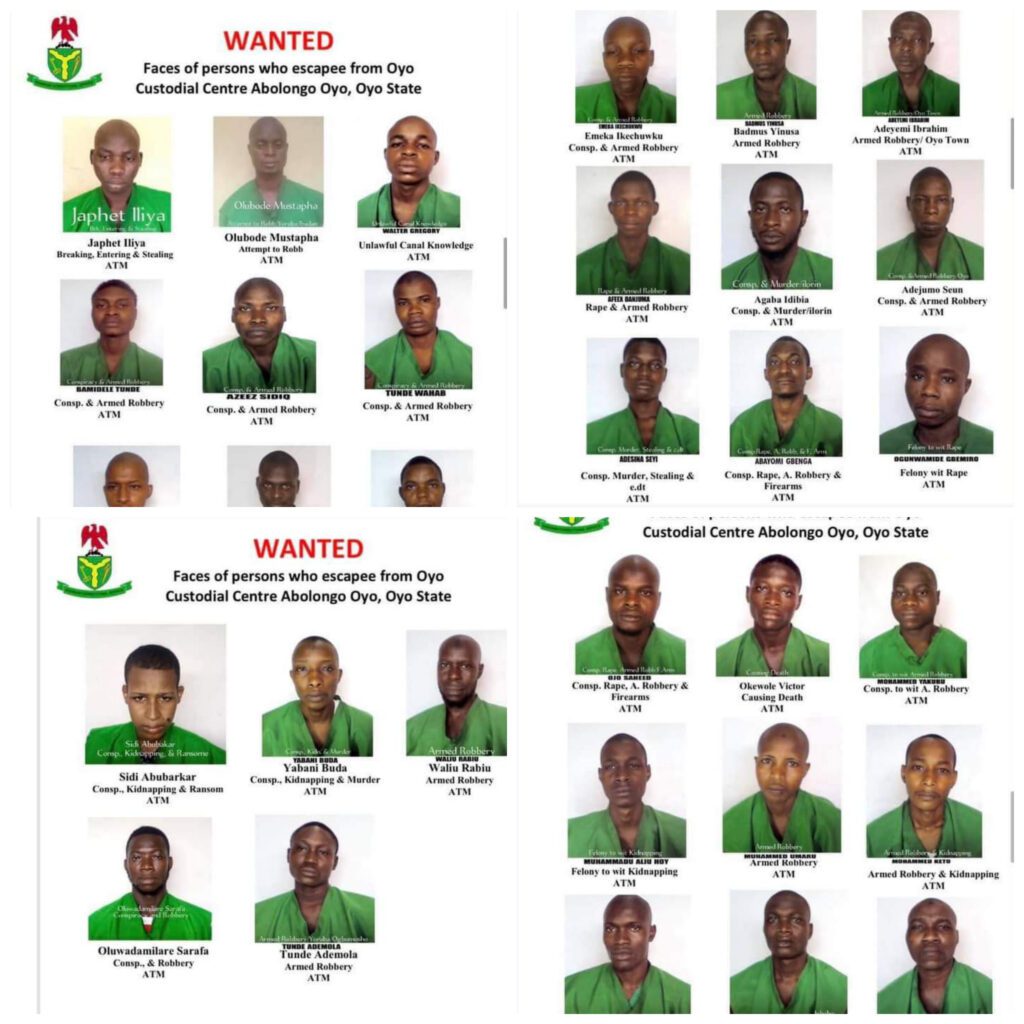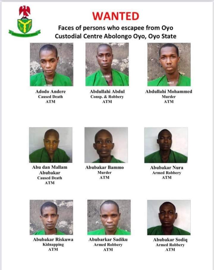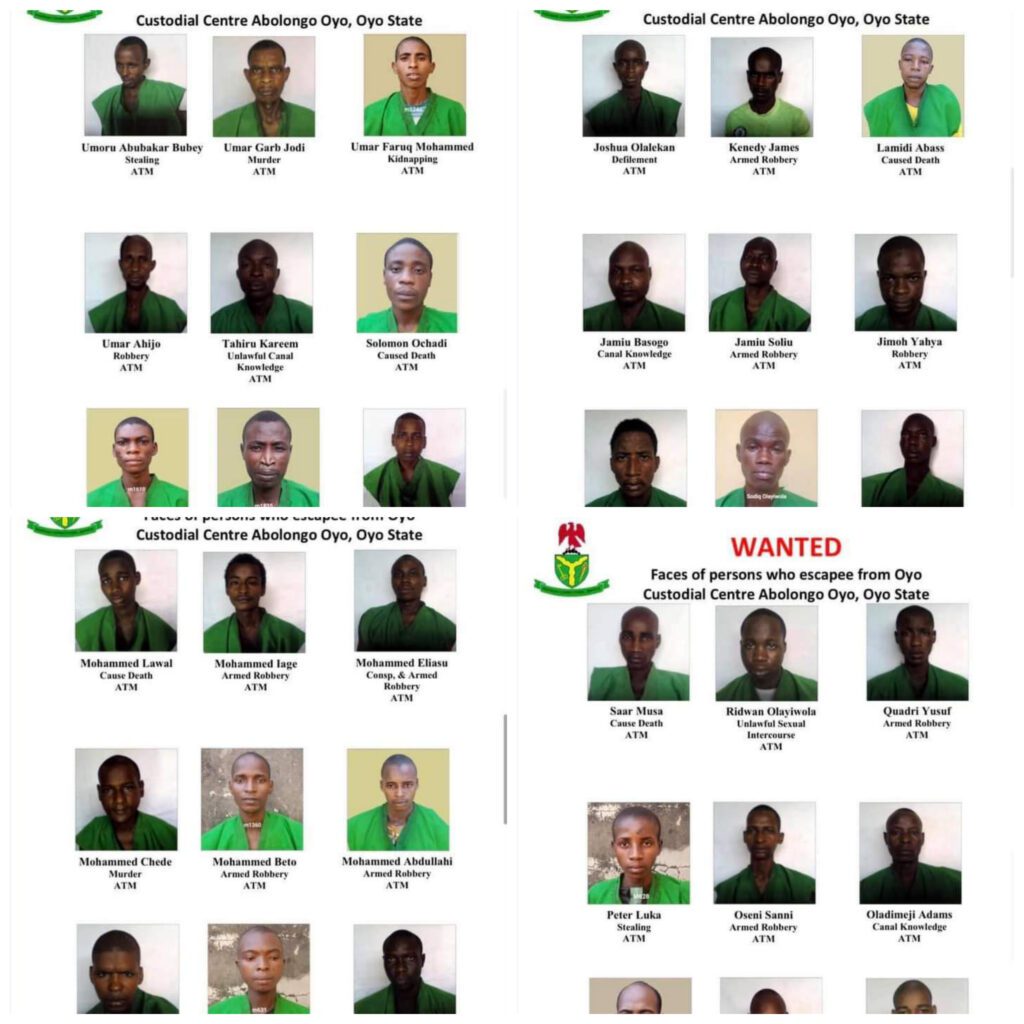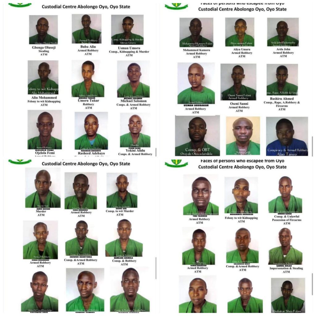 Following the jail break at Abolongo Custodial Centre in Oyo State by suspected Unknown Gunmen last week Friday, the Nigerian Correctional Service, on Wednesday, released the names and images of 122 inmates who escaped from Abolongo correctional facility in Oyo State.