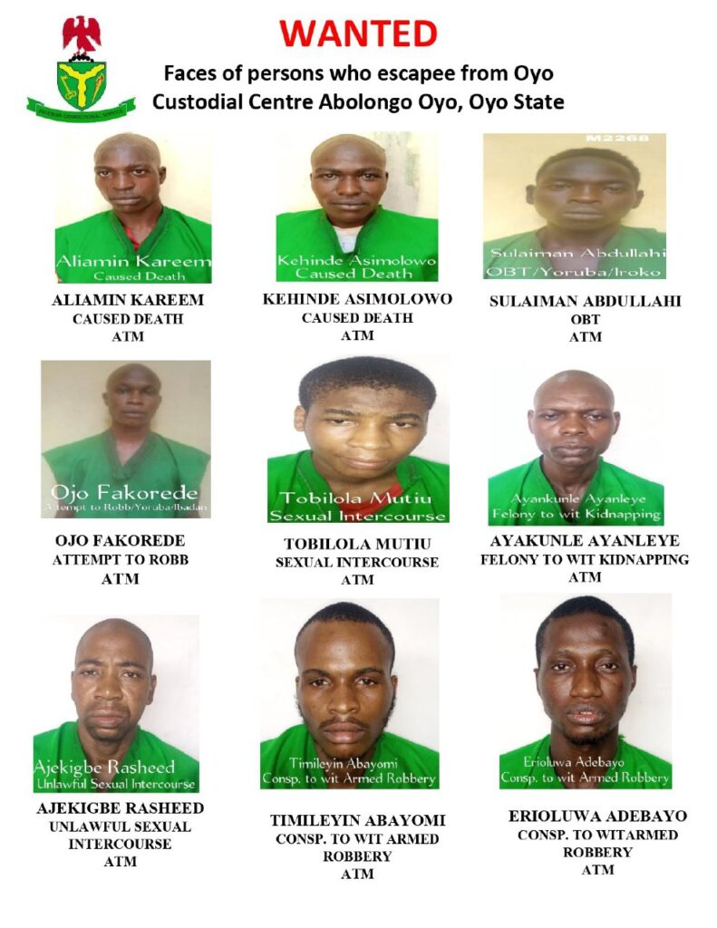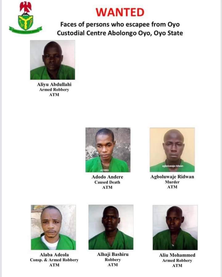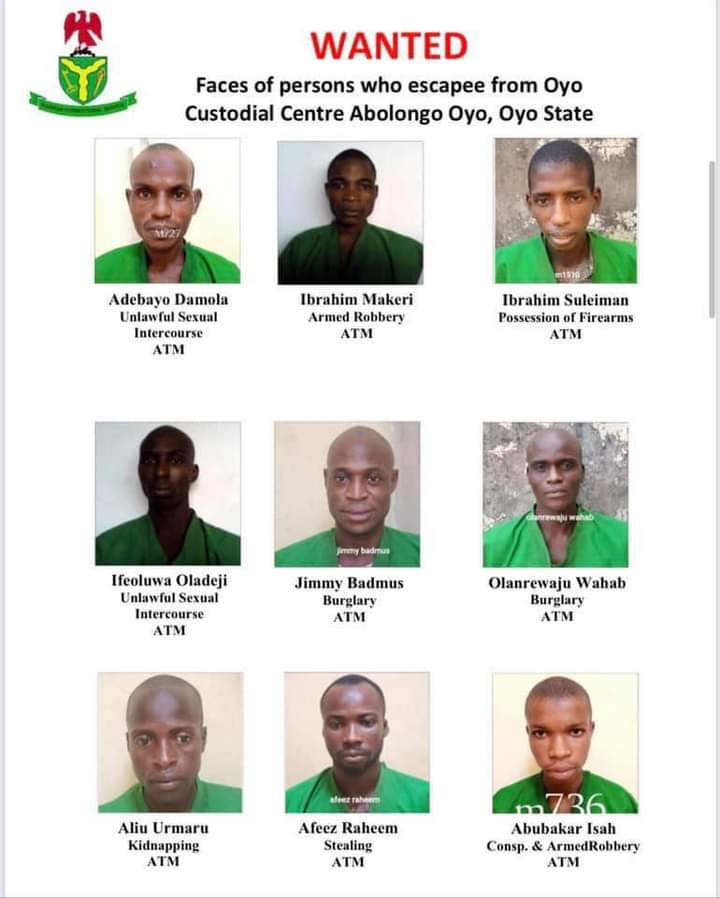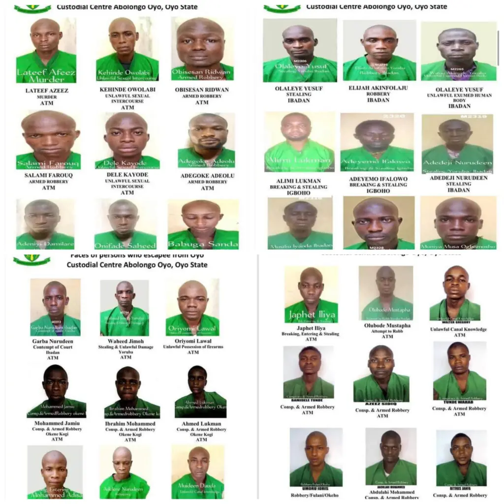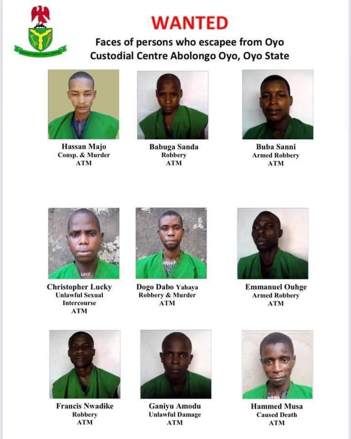 Following the jail break at Abolongo Custodial Centre in Oyo State by suspected Unknown Gunmen last week Friday, the Nigerian Correctional Service, on Wednesday, released the names and images of 122 inmates who escaped from Abolongo correctional facility in Oyo State.