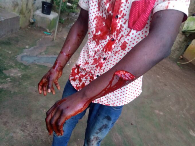 Trouble started last Wednesday, November 11, his stepmother “Mrs Grace” was upset because the boy doesn’t stay at home most time and in a bid to punish him, slashed his arm with a machete and broke a bottle on his head.