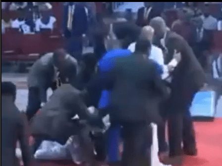 In the video serving rounds online the man beat the security, ran to the pulpit and held the clergyman’s feet. He was however stopped by security officers who quickly intervened.
