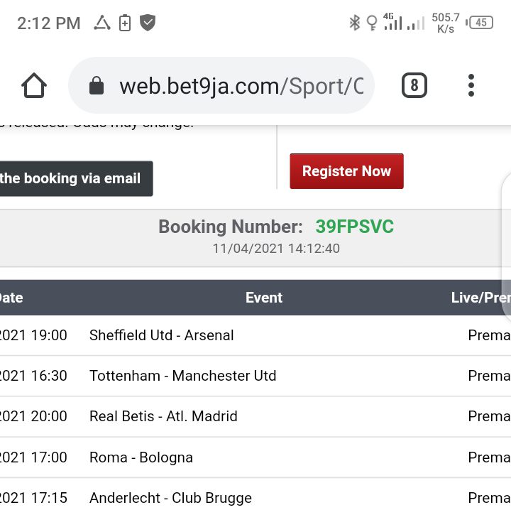 Today Football Betting Tips Football Betting Predictions April 11, 2021April 11, 2021AfricTeamLeave a Comment on Today Football Betting Tips Help Us Share This Article Happy Sunday to you all, Below are today Football betting Tips. Booking Code Below Games start by 3pm local time, Good Luck Everyone. Previous Post Next Post Join Africhome Telegram Channel YOU MAY HAVE MISSEDInvesting In Homegrown Rice Farming For ProfitNUPRC Unlocks $4.9bn Gas Investments, Approves 25 Field Projects Under PIAVice Chancellor Charges Govt On Teachers’ WelfareInside Lecturers’ Ultimatum That Could Shut Varsities AgainUnion Asks Fed Govt, States To Improve Teachers’ WelfareNiyi Yusuf: Nigeria Must Create 4.5 Million Jobs Yearly to Avert CrisisHousing Minister Dangiwa Hails Ogun’s Gateway Airport as One of Nigeria’s BestGovt Plans Overhaul Of Agricultural Education To Drive Food SecurityCitibank Nigeria Meets CBN’s ₦200bn Recapitalisation TargetUNILAG Celebrates Innovation As Minister Visits CampusHelp Us Share This Article