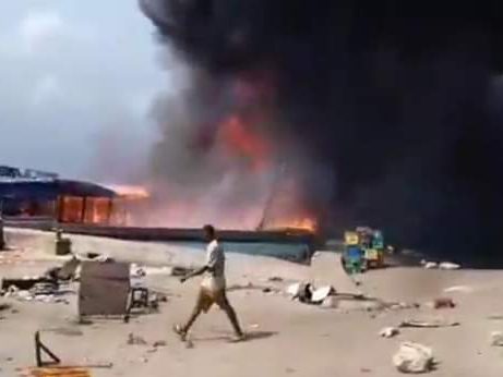 Eyewitnesses say the fire started from a market boat carrying passengers.